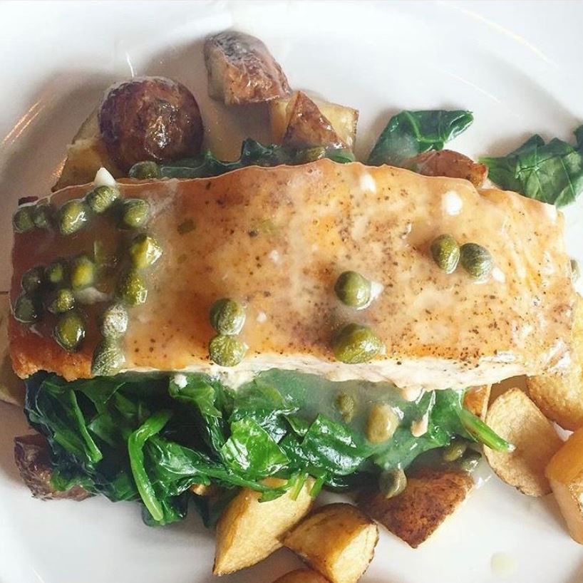 - Bronzino – cous-cous, haricot vert, lemon tomato caper sauce.
