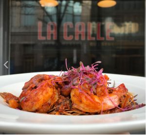 - Fire Cracker Shrimp – Chili spiced shrimp flash fried. Placed over mango-charred jalapeno salsa. Topped with smoked paprika aioli.