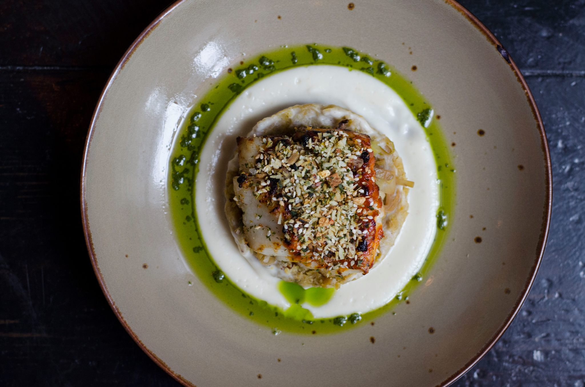 - Simply Grilled Fish – Cauliflower tahini, romanesco, freekah pickled aleppo pepper.
