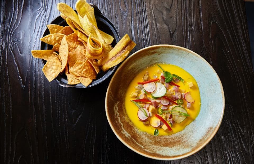 - Mojito Shrimp Ceviche – Mint, lime & crispy sweet potato.