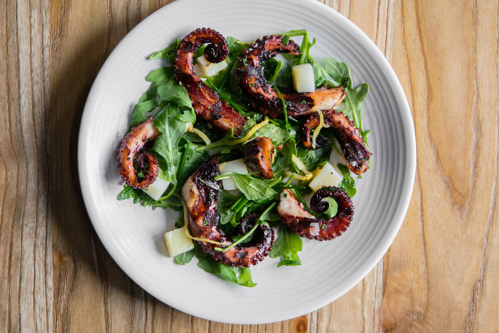 - Octopus – Salsa rosa, cannellini bean, mixed peppers, lemon, olive crumble.