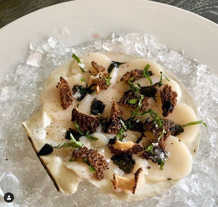 But one dish has caught our eye. Chef AJ Baker from the Cioppino Restaurant & Cigar Bar in Pittsburgh created a Live Scallop Crudo with a Squid Ink Vinaigrette, pickled morel mushrooms, basil, and Maldon sea salt.