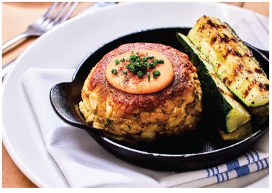 • Maryland crab cakes, made exclusively with fresh local crabmeat whenever available