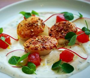 - Royal Sea Bass – sorghum risotto, smoked labne, heirloom root vegetable
