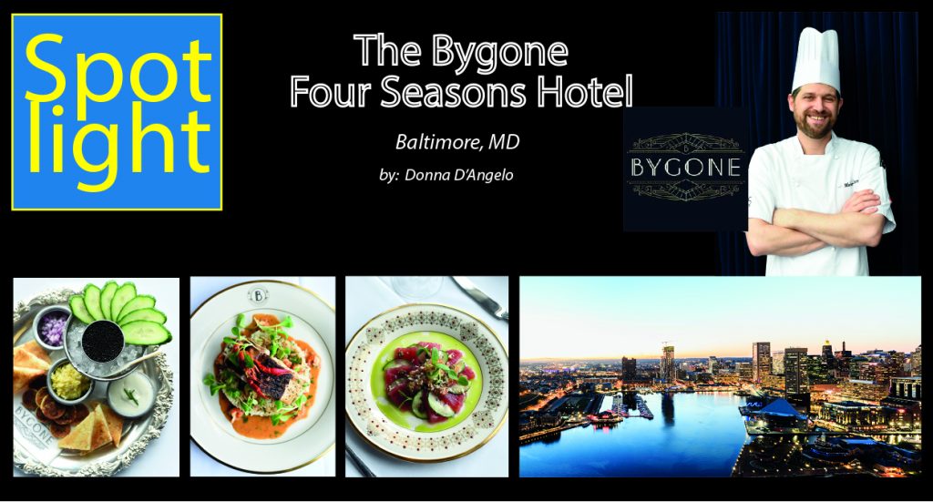 Baltimore’s inner harbor, is The Bygone, a rooftop restaurant offering full sensory dining at its finest. A fusion of old and new, The Bygone reminisces of past eras while remaining contemporary. Stepping inside The Bygone is like entering a modern day version of an F. Scott Fitzgerald novel. The gilded décor and glitzy dress code transports diners to the glamourous days of the roaring 1920’s. Open the menu and you’ll see a nod to the 50’s and 60’s era with new twists on classic dishes inspired by Nouvelle cuisine. Behind the unique menu is Atlas Restaurant Group’s Corporate, Chef Mathew Oetting, who’s equipped with a classical French background and a binder full of vintage menus as inspiration. With this, he designed an old-style menu for the modern day pallet.