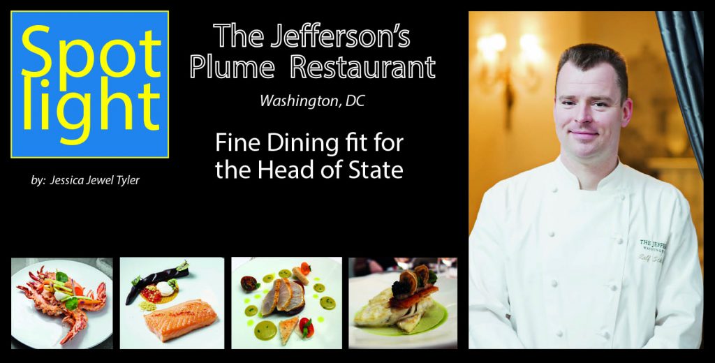 Even if you haven’t booked the lavish presidential suite, The Jefferson Hotel offers a stately White House dinner. Located in Washington D.C. just a few blocks from the National Mall, the historic Jefferson Hotel is home to 99 posh rooms, and three restaurants that focus on inventive flavors, in period style, with great attention to detail. Executive Chef Ralf Schlegel, runs the kitchen which serves all of the Hotel’s dining options including the Greenhouse, Quill, and newly Michelin starred fine-dining restaurant, Plume.