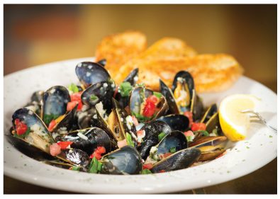 From fresh mussels (served white or red) and little neck clams to oysters, shrimp, and jumbo lump crab cakes, the seafood program has kept generations of customers coming back. Flounder, breaded on site, is another longtime favorite.